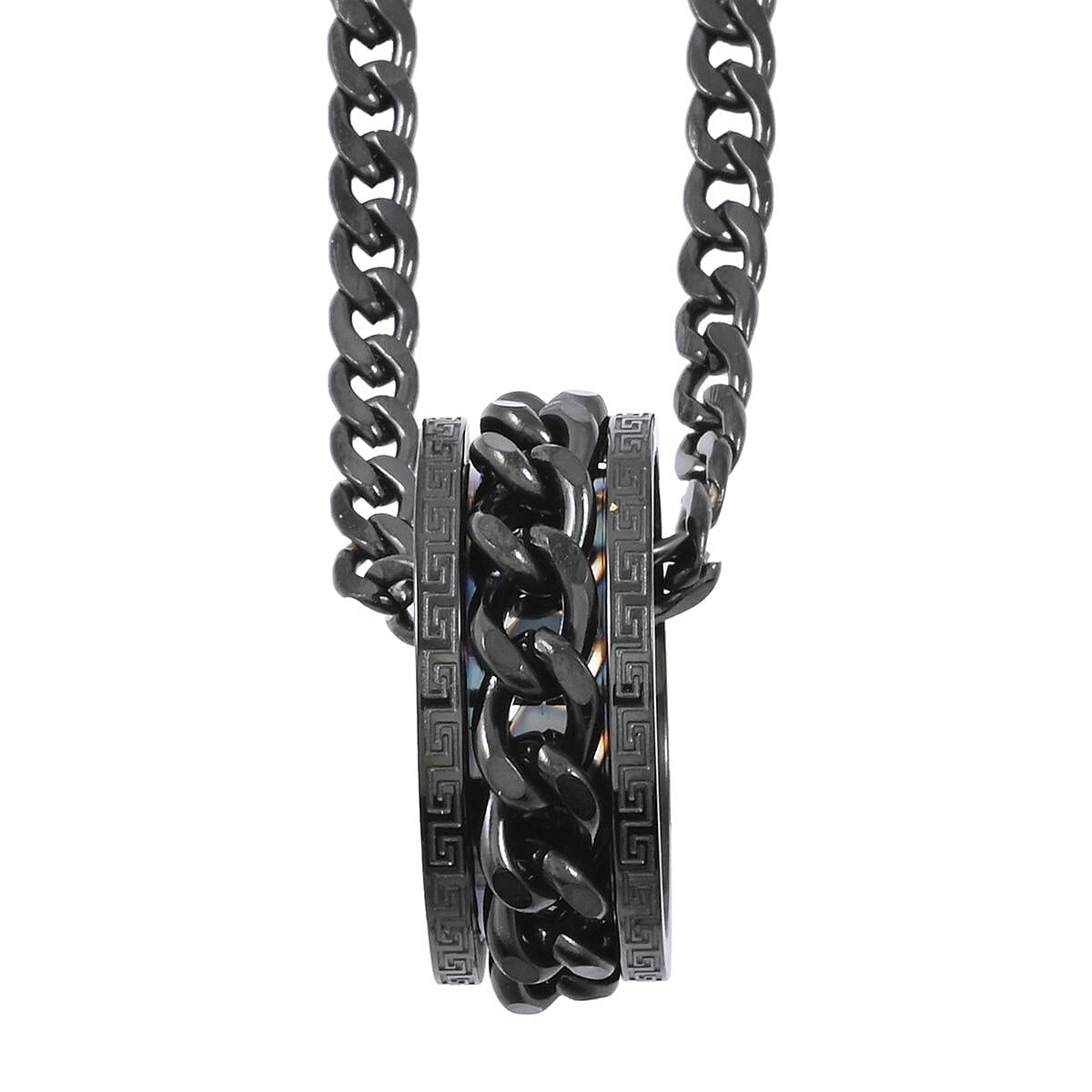 Chain Necklace (24 Inches) and Ring (Size 7.0) in ION Plated Black Stainless Steel