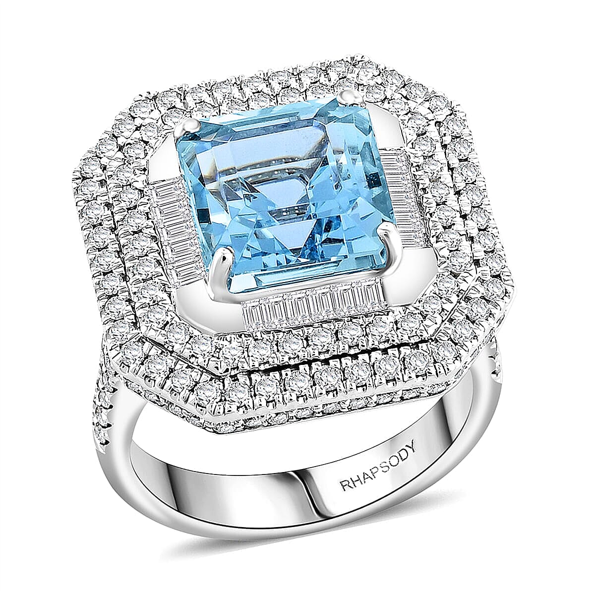 Chairman Collection Certified & Appraised Rhapsody 950 Platinum AAAA Santa Maria Aquamarine, Diamond (E-F, VS) (1.83 cts) Ring (Size 6.5) (13.63 g) 6.65 ctw