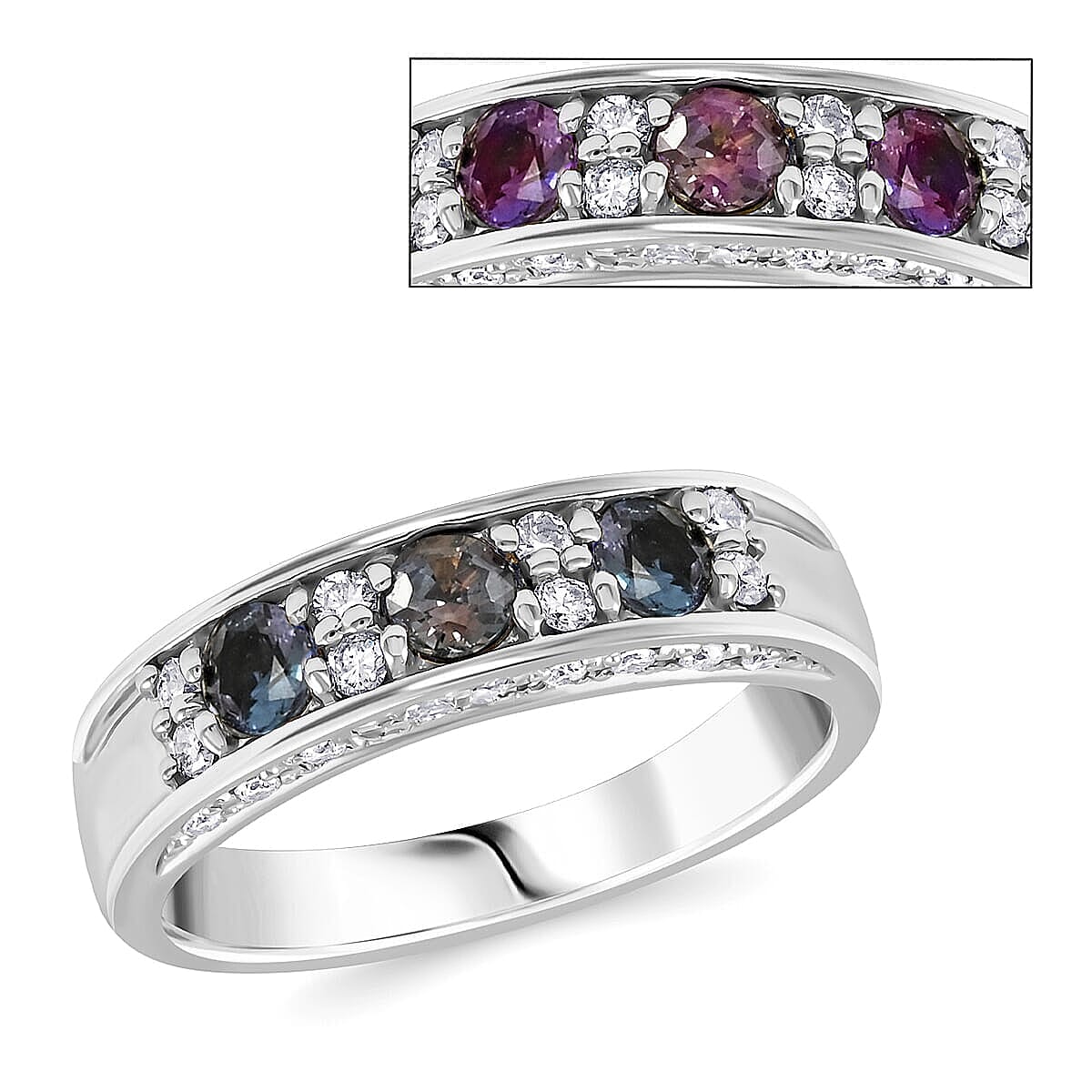 Command attention with this AAAA Brazilian alexandrite ring in 900 platinum. The band ring features rare color-changing stones of unmatched beauty. Let this platinum ring express your love in a luxurious style.