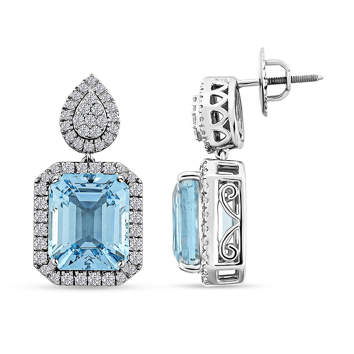Chairman Vault Collection Certified & Appraised Rhapsody AAAA Santa maria Aquamarine and E-F VS Diamond 15.53 ctw Earrings in 950 Platinum 17.51 Grams
