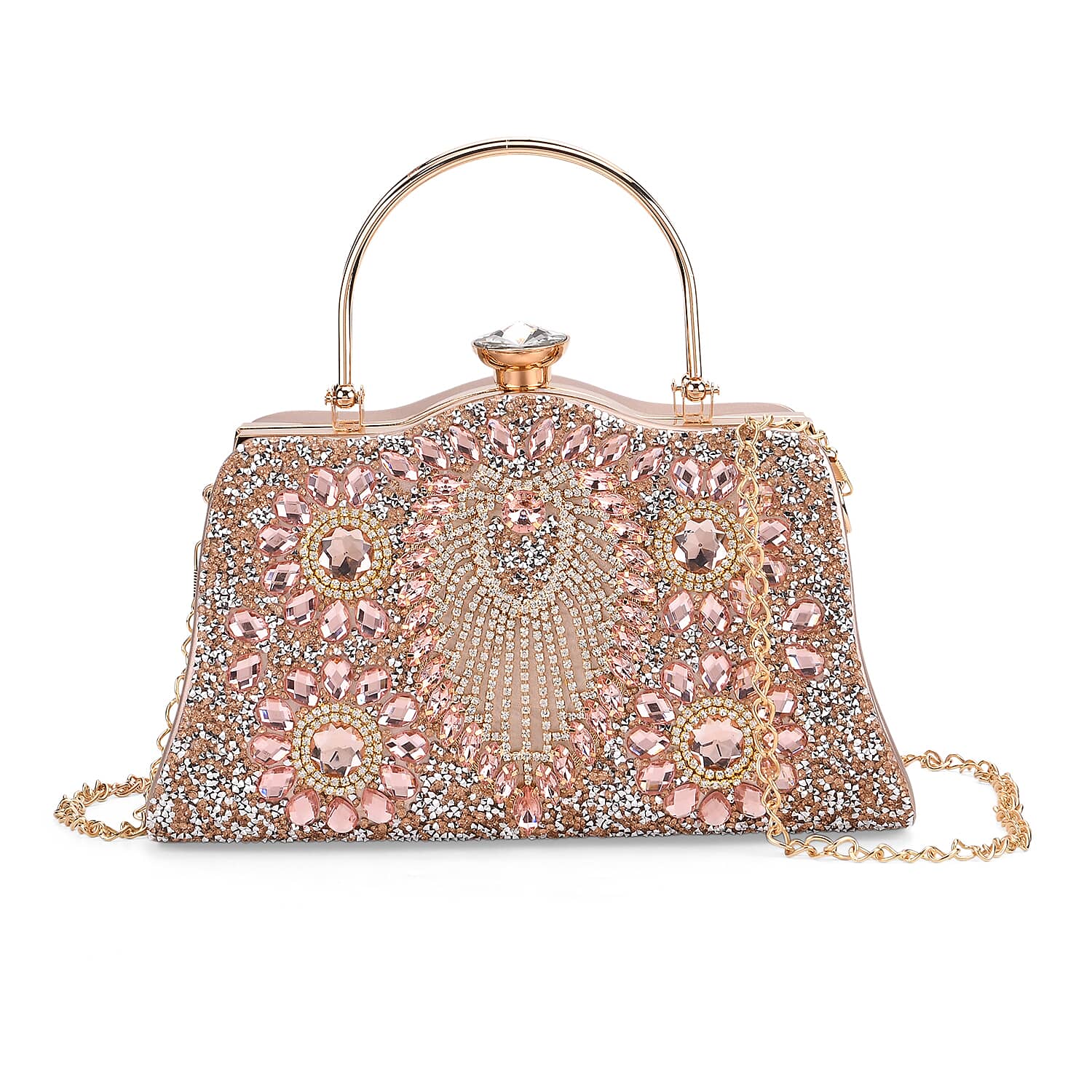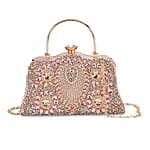 Champagne 3D Peacock Pattern Crystal Clutch Bag with Shoulder Chain Strap