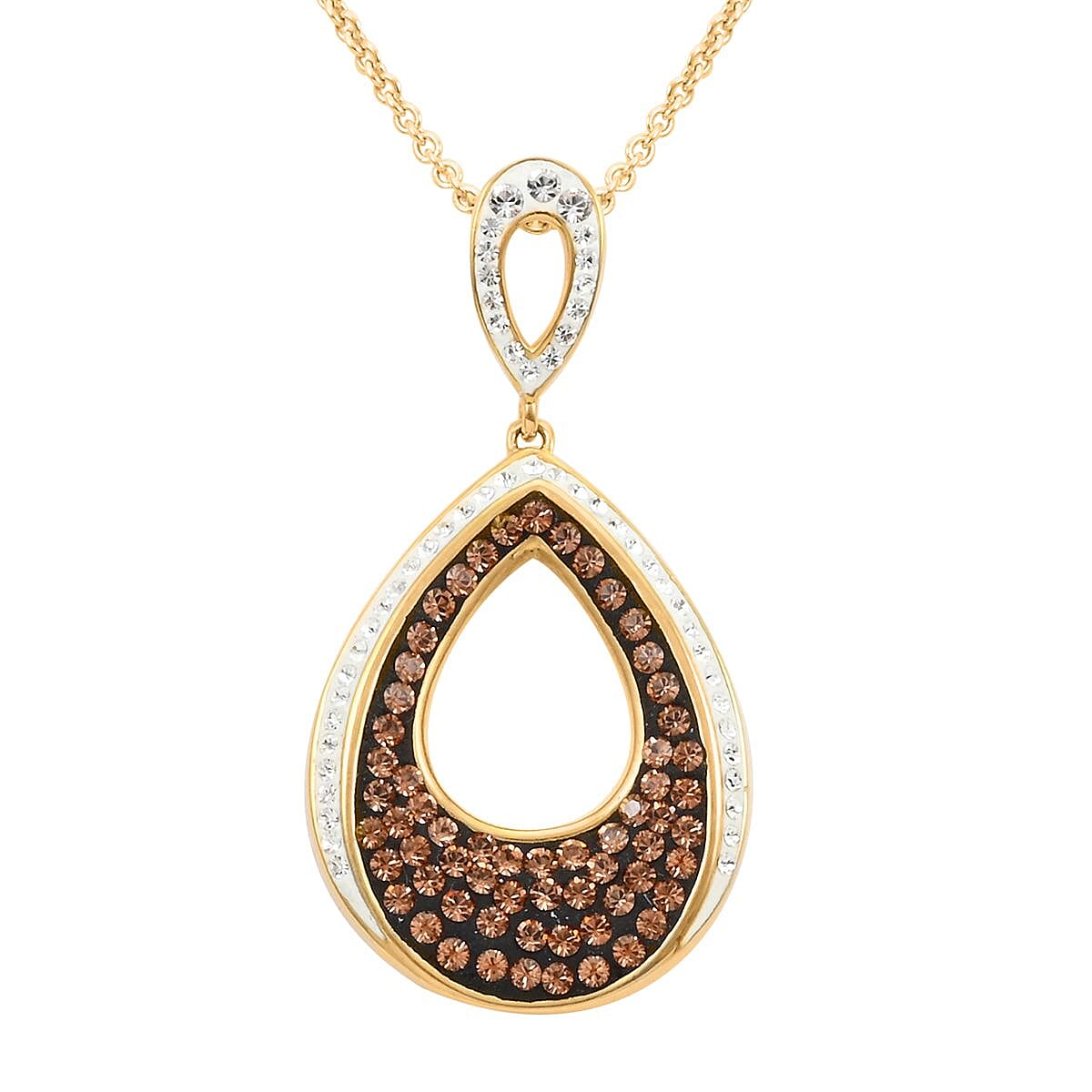 Champagne and White Color Austrian Crystal Pendant Necklace 18 Inches in 14K Goldtone Over