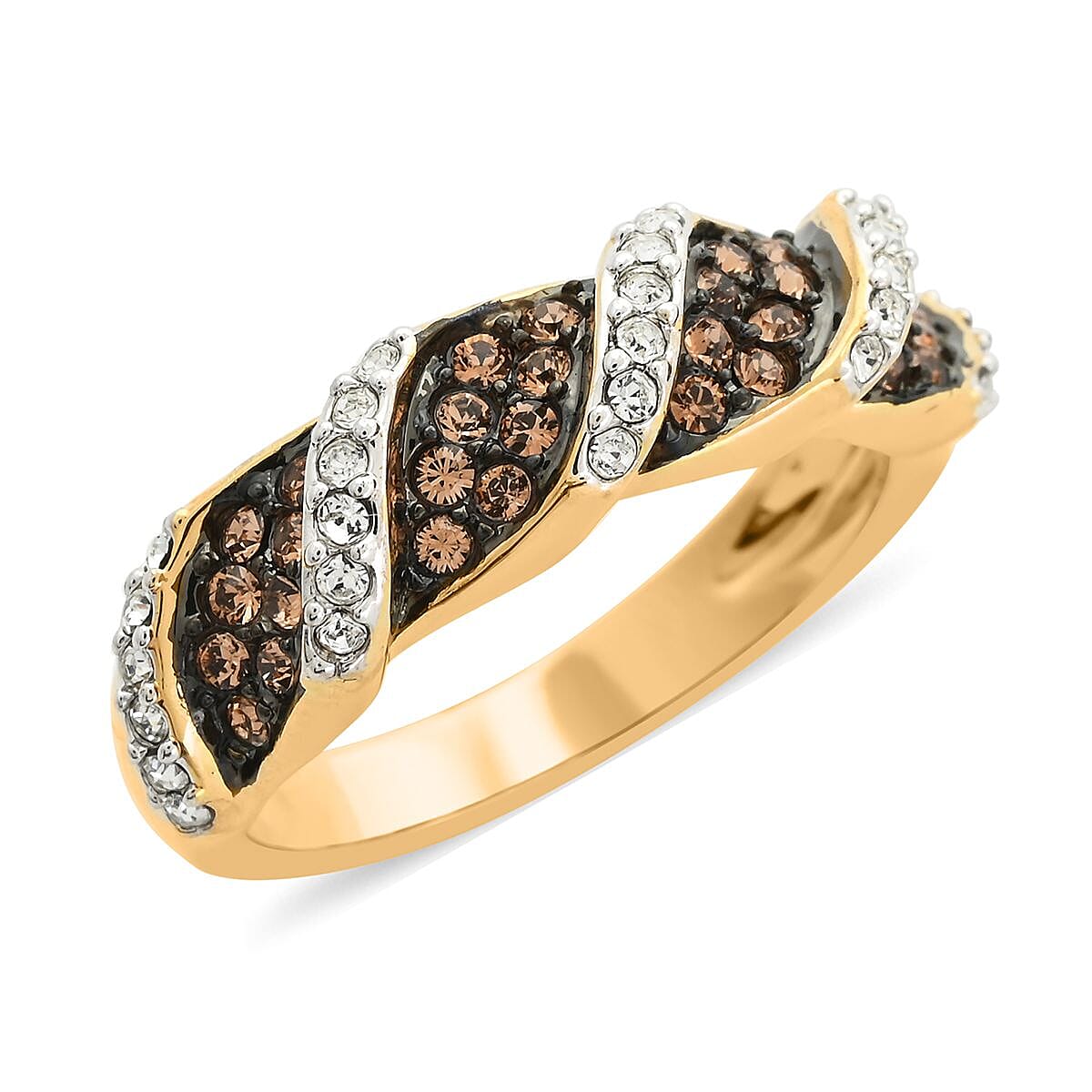 Champagne and White Crystal Ring in Goldtone (Size 7.0)