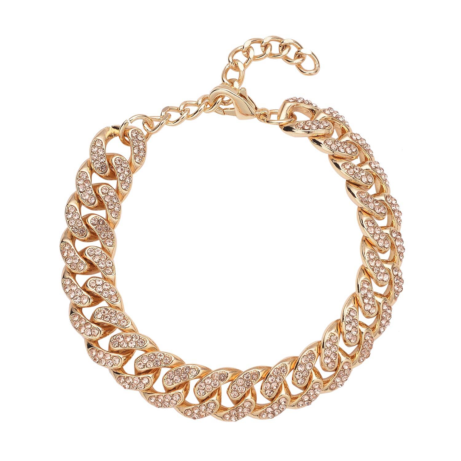Champagne Austrian Crystal Curb Link Chain Bracelet in Goldtone (7.50-9.50In)