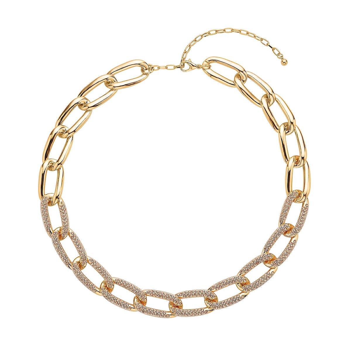Indulge in this sparkling Austrian crystal paperclip link necklace made of plated brass for durable and hypoallergenic wear. The necklace offers the luxurious sparkle of paperclips combined with exclusive Austrian crystal studs.