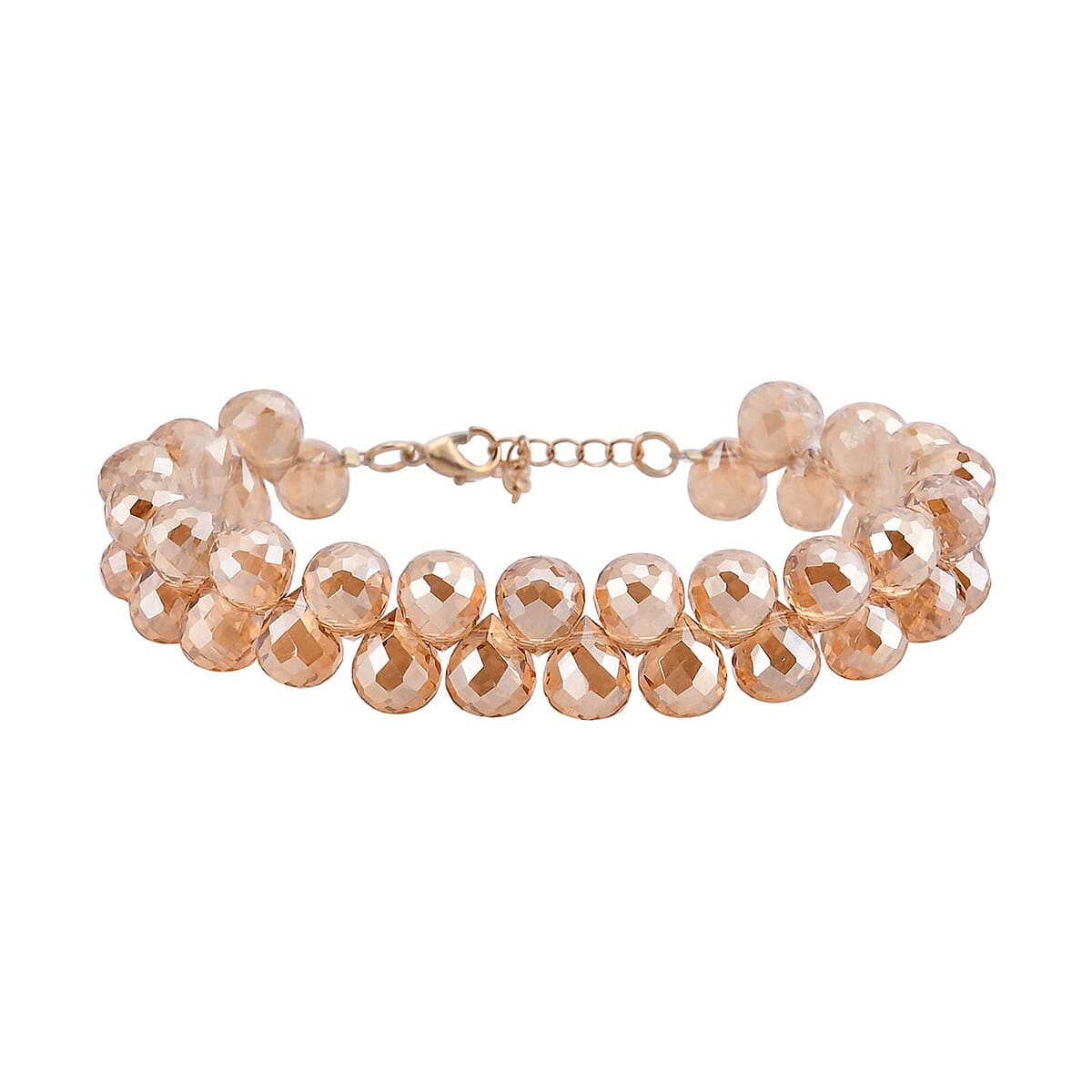 Champagne Glass Beaded Bracelet in 14K YG Over Sterling Silver (7.5-8.5In)