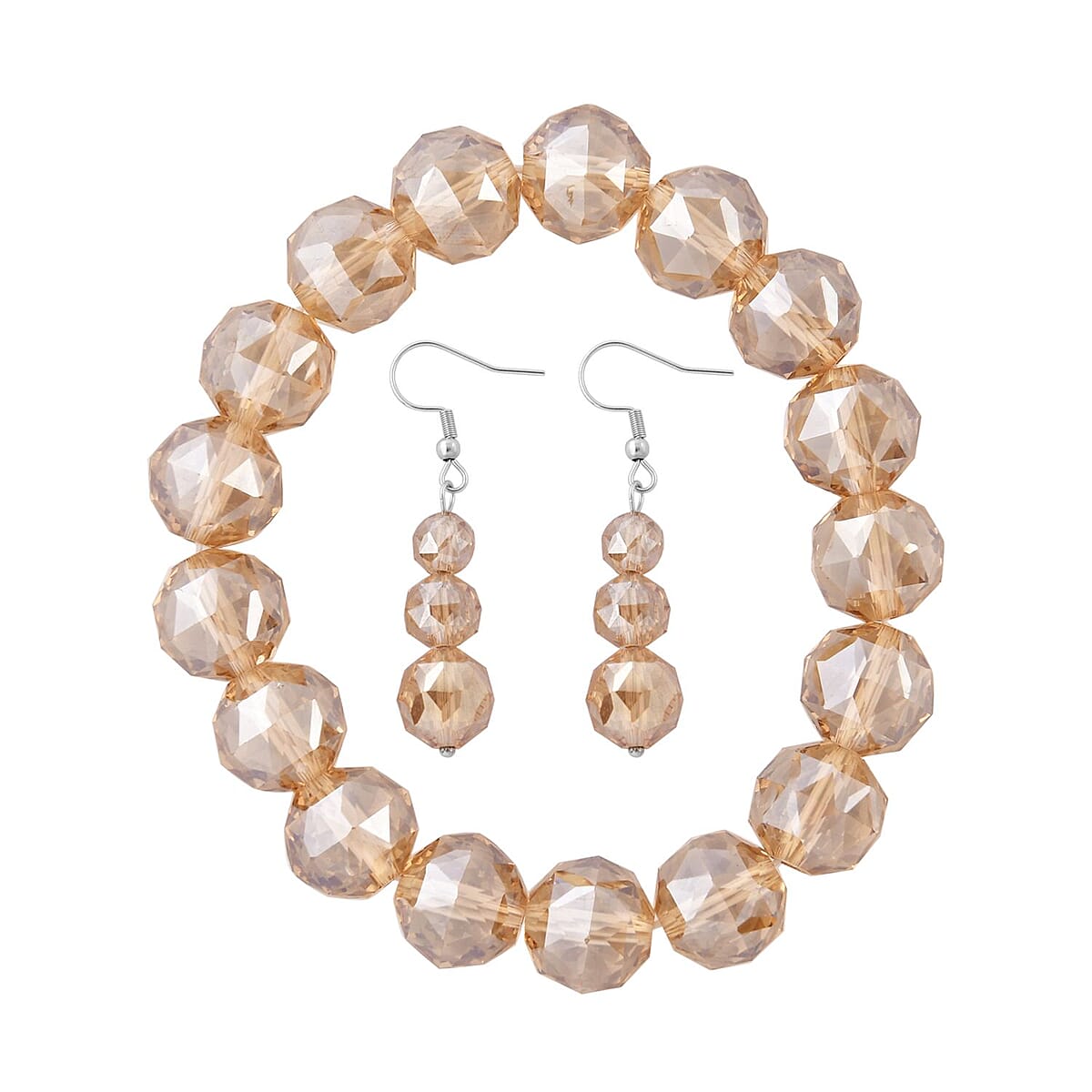 Champagne Glass Beaded Stretch Bracelet and Dangle Earrings in Stainless Steel , Tarnish-Free, Waterproof, Sweat Proof Jewelry