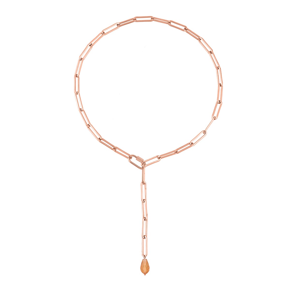 Champagne Glass Lariat Necklace (22 Inches) in ION Plated RG Stainless Steel , Tarnish-Free, Waterproof, Sweat Proof Jewelry