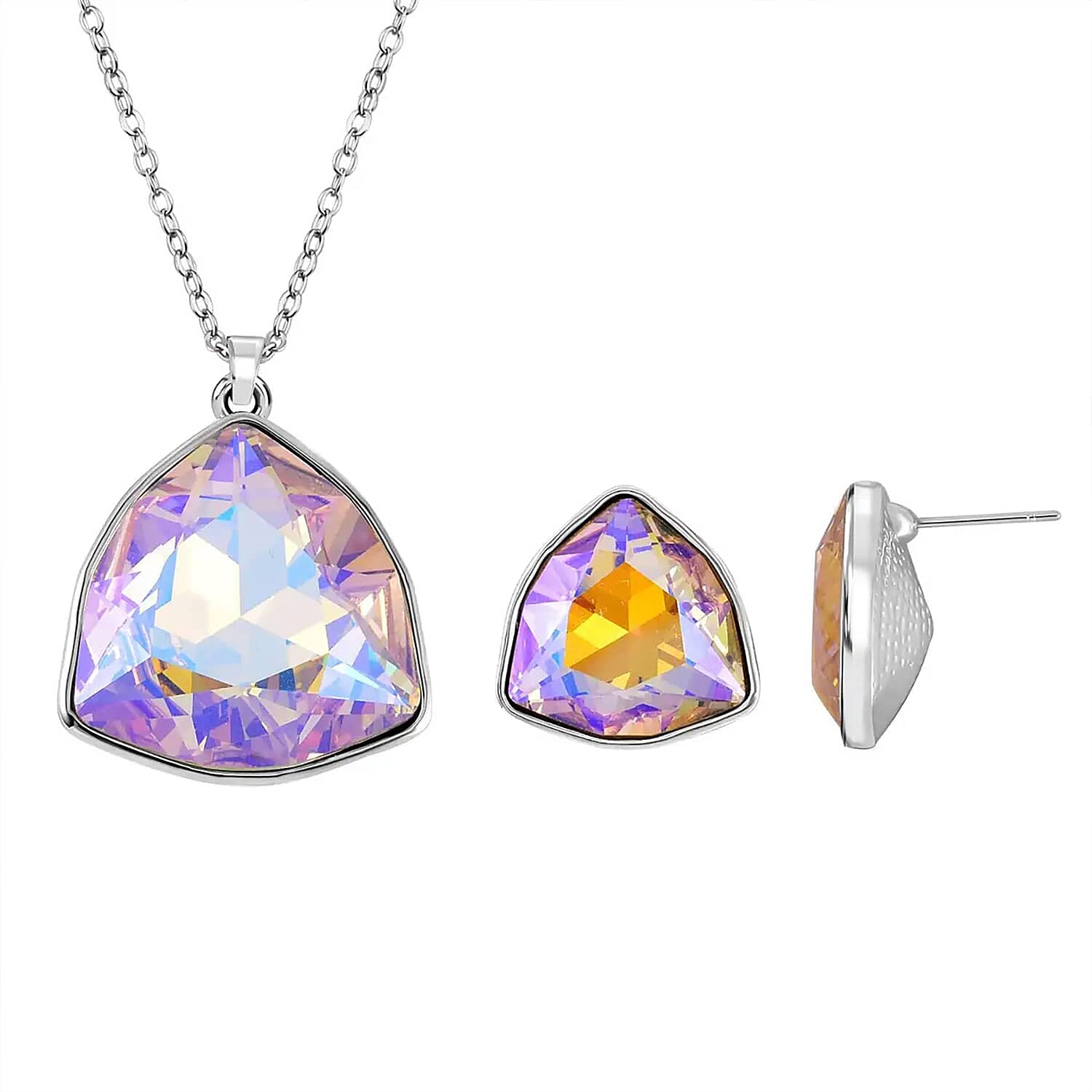 Elevate your collection with this Austrian crystal pendant necklace and earrings in durable metal. This elegant jewelry set for women dazzles with Austrian crystals, adding subtle sparkle to any outfit. Lightweight and comfortable, it brings effortless elegance to both everyday looks and special occasions.