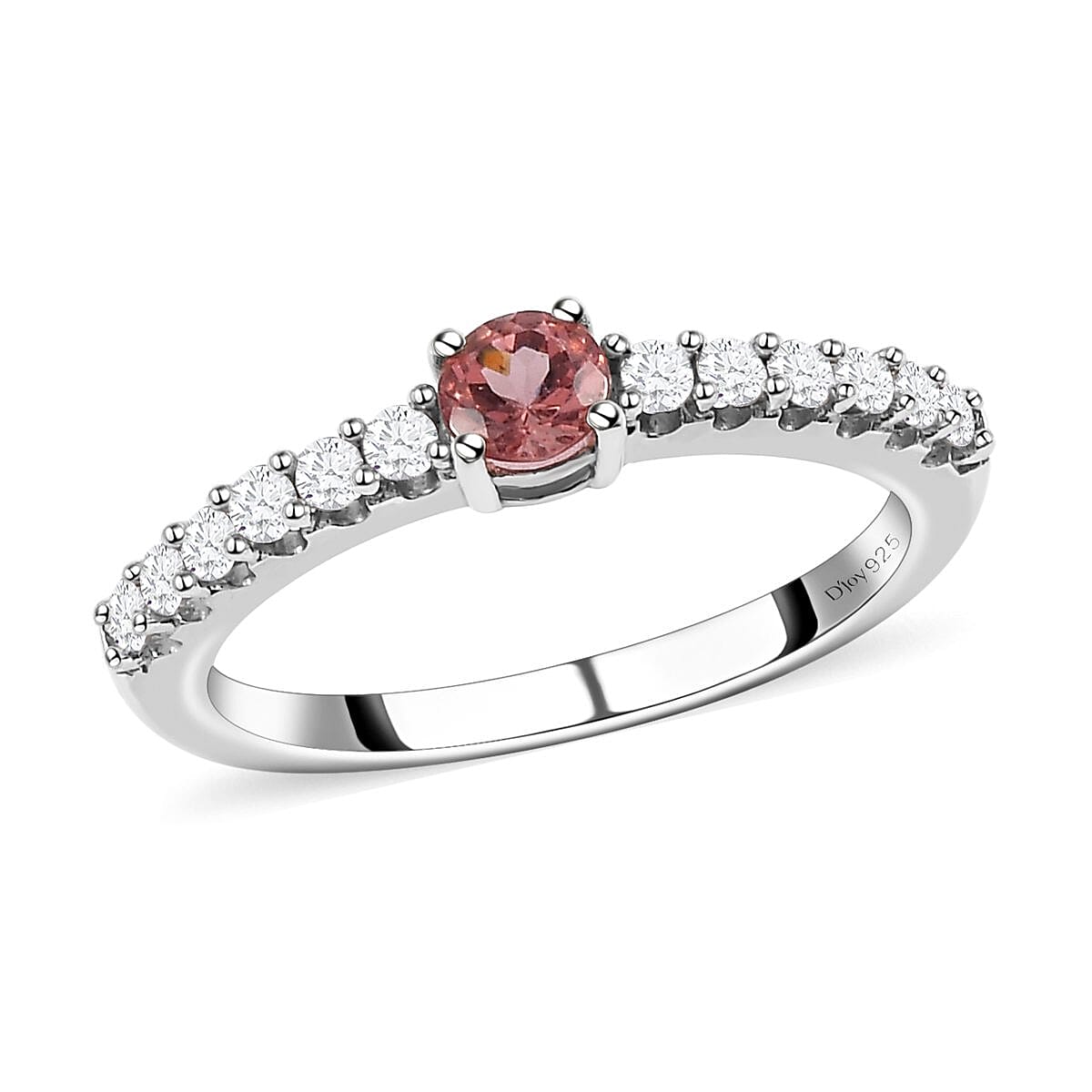 Champagne Rose Apatite, Natural White Zircon Ring in Platinum Over Sterling Silver 0.65 ctw