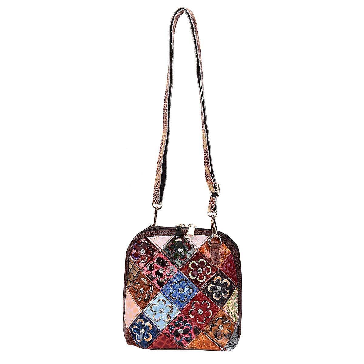 CHAOS By ELSIE Multi Color 3D Flower Theme Pattern Genuine Leather Crossbody Bag with Shoulder Strap