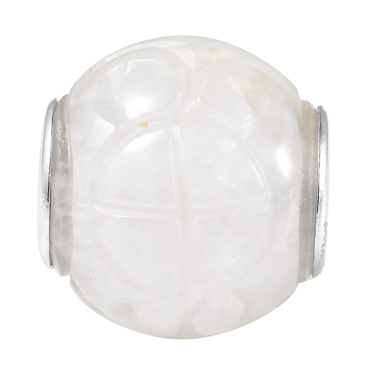 Charmes D'Joy White Jade Carved 13-15mm Beaded Charm in Rhodium Over Sterling Silver 16.00 ctw