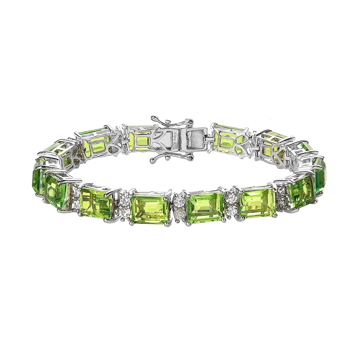 Chartreuse Quartz (Triplet) and White Zircon Bracelet in Platinum Over Sterling Silver (6.50 In) 32.00 ctw