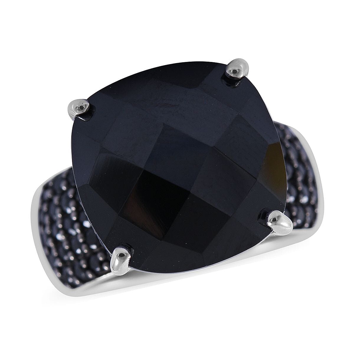 Checkerboard Cut Thai Black Spinel Ring in Platinum Over Sterling Silver (Size 11.0) 14.00 ctw