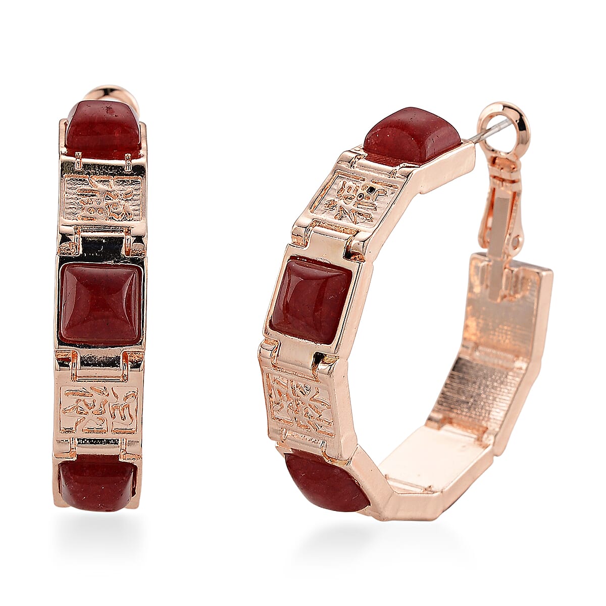 Cherry Quartz 5.00 ctw Hoop Earrings in Rosetone