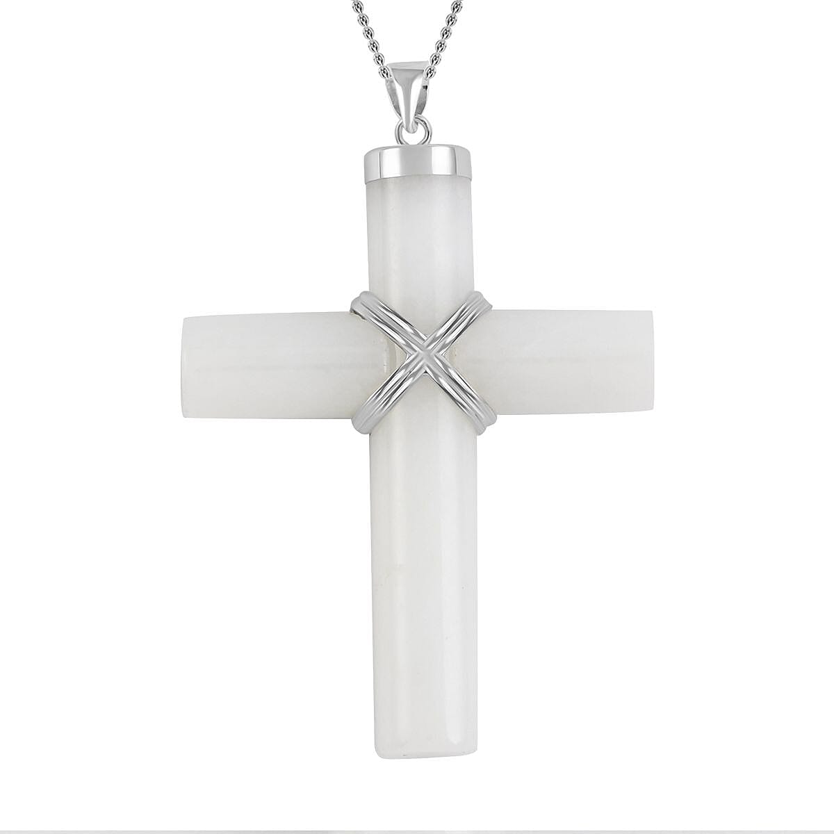 Christmas Cross White Jade Pendant Necklace 18 Inches in Rhodium Over Sterling Silver 21.00 ctw