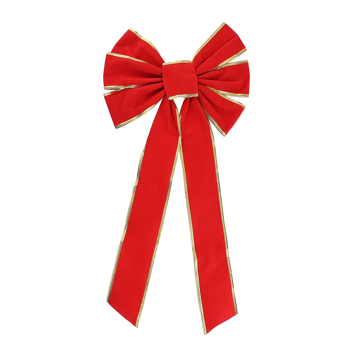 Christmas Red Velvet Bow w/ Gold Trim (10x22 Inches)