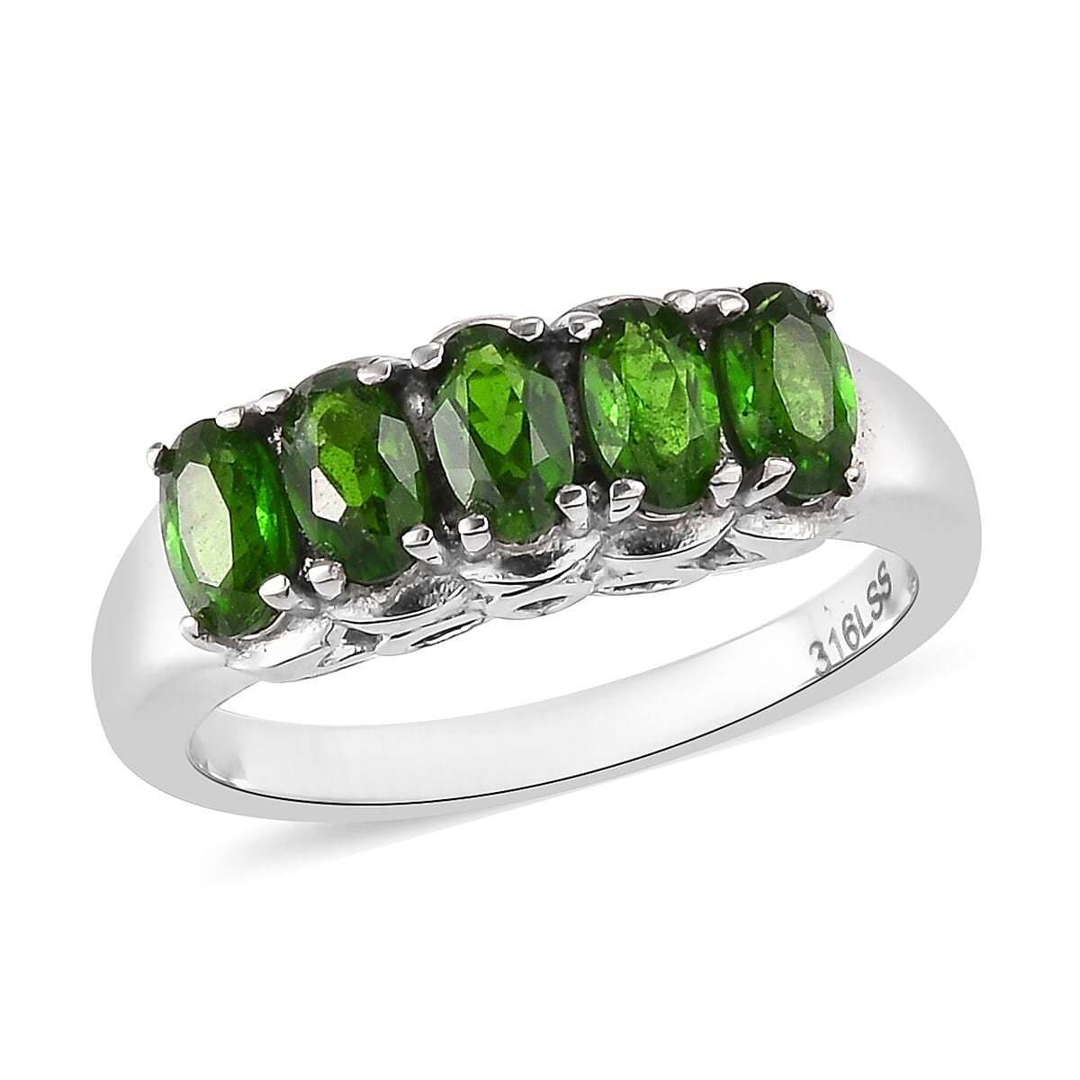 Chrome Diopside 5 Stone Ring in Stainless Steel (Size 10.0) 1.15 ctw