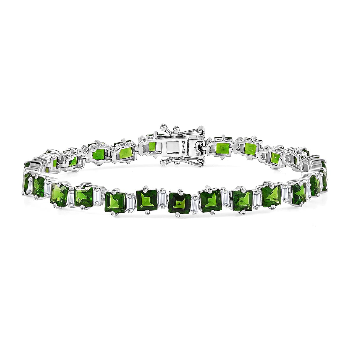 Chrome Diopside and Moissanite 10.65 ctw Sea Waves Bracelet in Rhodium Over Sterling Silver (6.50 In)