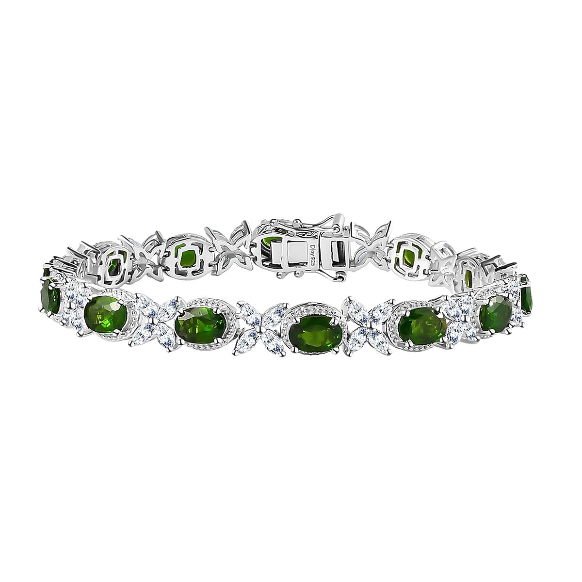 Chrome Diopside and White Topaz Bracelet in Platinum Over Sterling Silver (7.25 In) 15.75 ctw