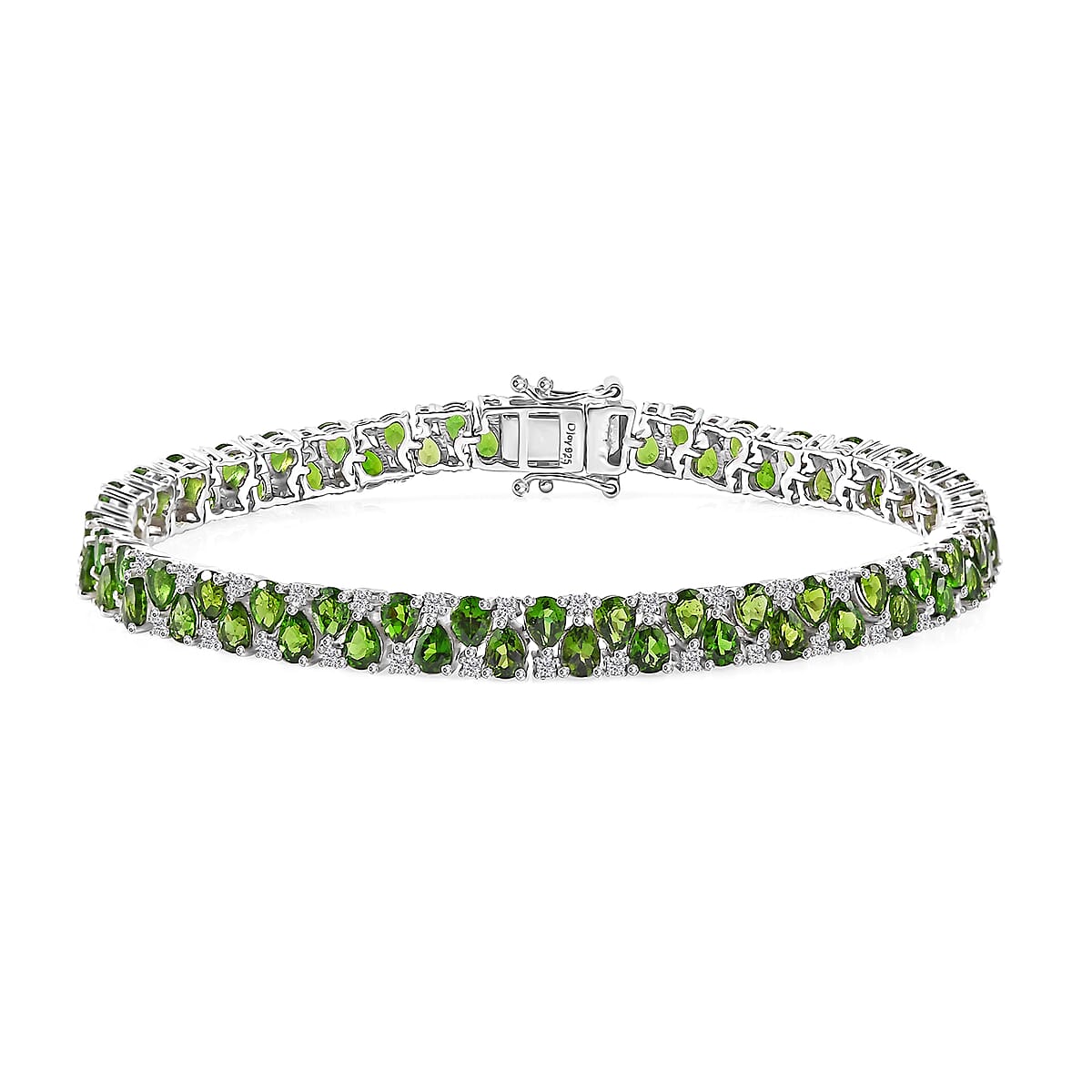 Chrome Diopside and White Zircon 13.65 ctw Bracelet in Rhodium Over Sterling Silver (8.00 In)