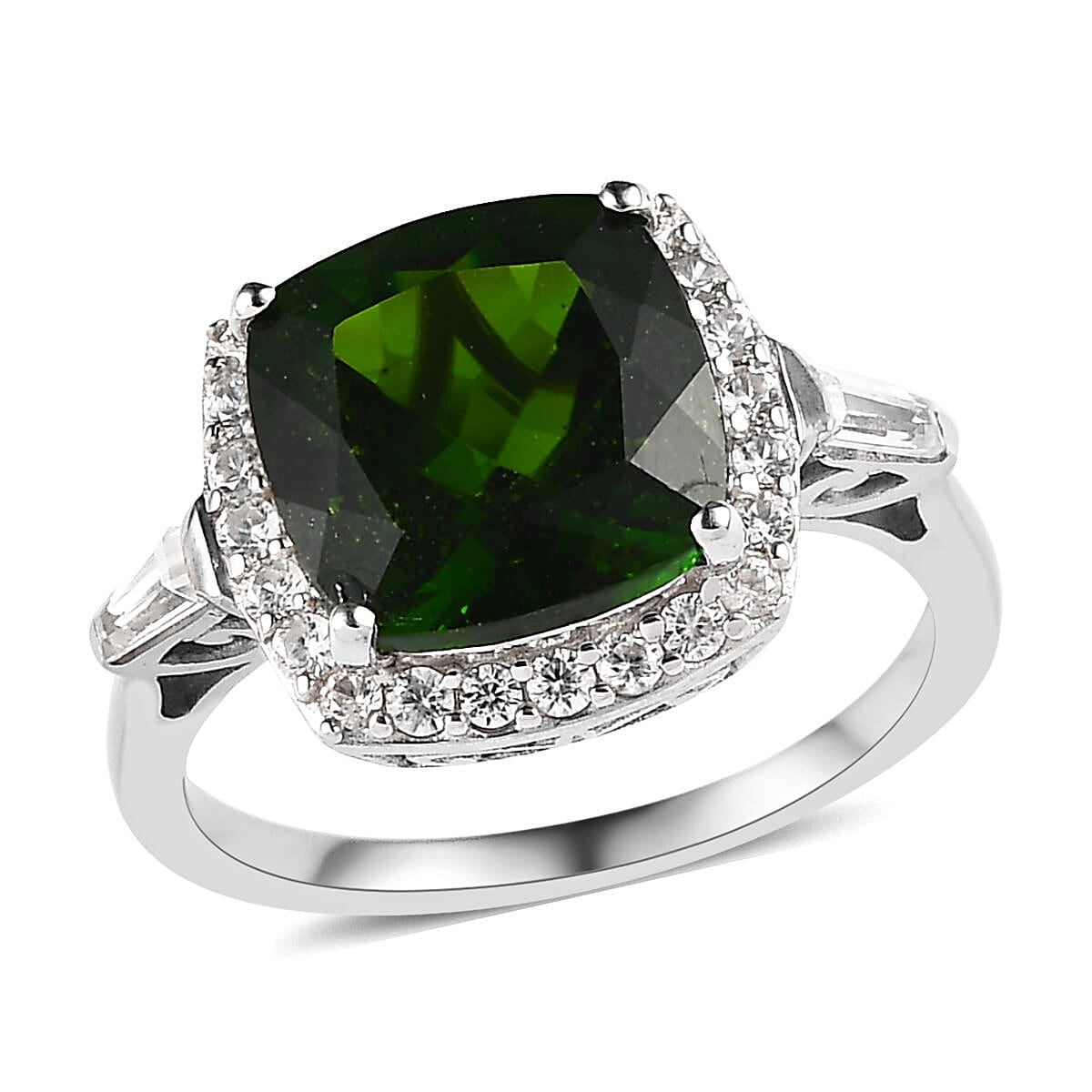 Chrome Diopside and White Zircon Ring in Platinum Over Sterling Silver (Size 7.0) 5.00 ctw