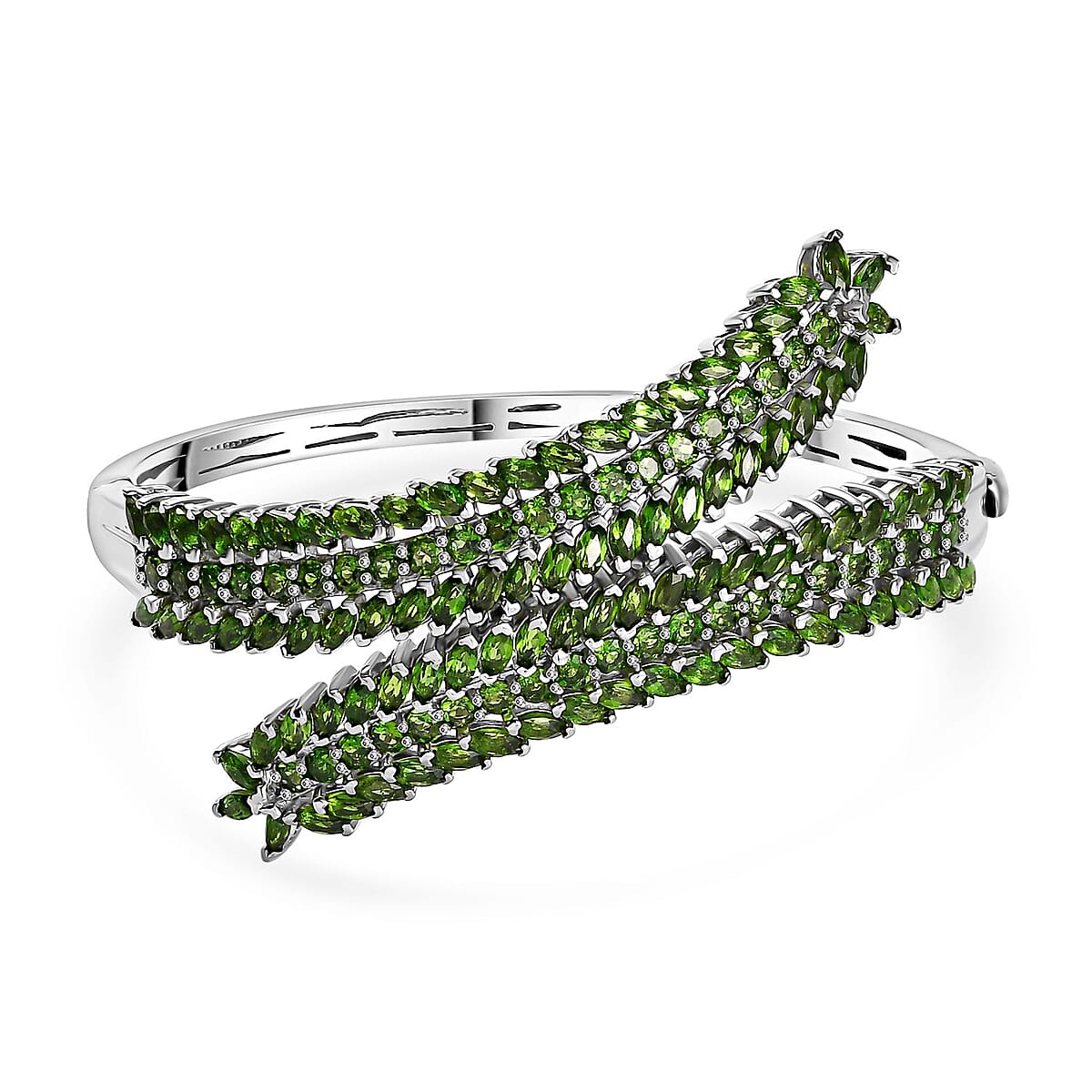 Chrome Diopside Bypass Leaf Bangle Bracelet in Platinum Over Sterling Silver (6.50 In) 11.70 ctw