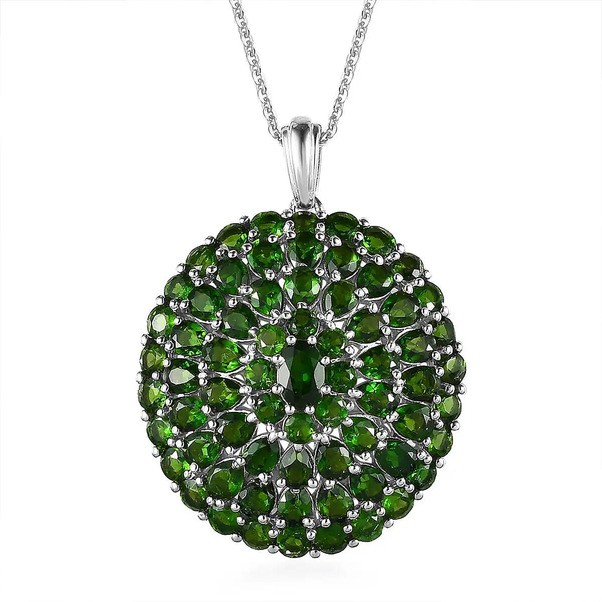 Chrome Diopside Cluster Pendant Necklace (20 Inches) in Platinum Over Sterling Silver 11.50 ctw