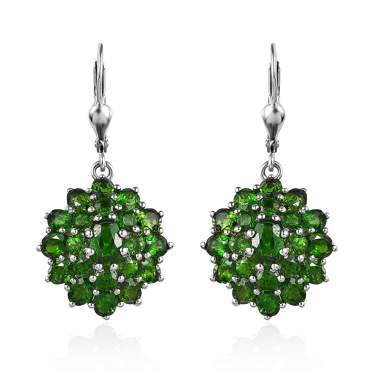Immerse yourself in the vibrant dance of green and silver as you adorn the spectacular chrome diopside dangling earrings set in sterling silver. These dazzling earrings embody the mysterious allure of the deep green chrome diopside, masterfully crafted into a floral cluster that dances gracefully with your every move.