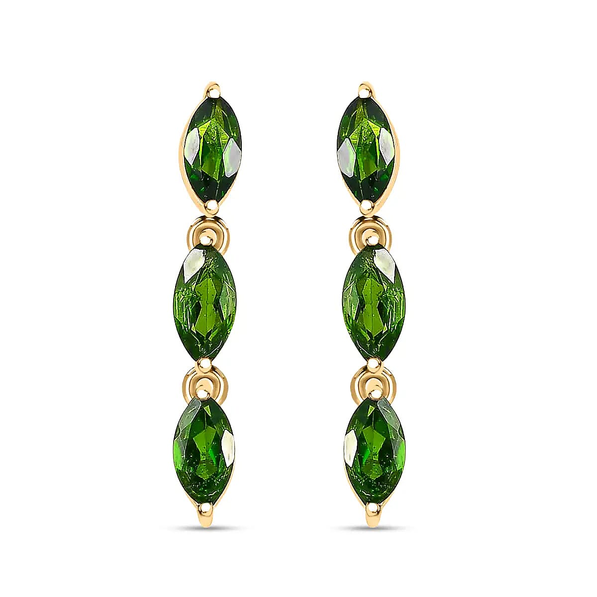 Chrome Diopside Dangling Earrings, Vermeil Yellow Gold Over Sterling Silver Earrings, Three Stone Earrings 1.40 ctw
