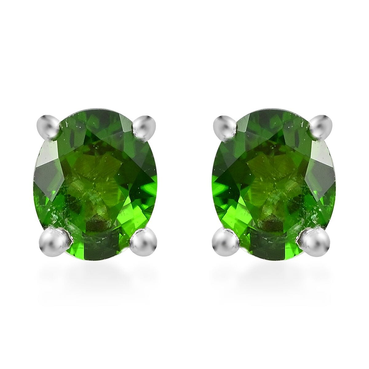 Dive into an oasis of elegance with the chrome diopside solitaire stud earrings. With each earring featuring the vivid allure of a chrome diopside gemstone, set in the shimmering embrace of Platinum over Sterling Silver, these studs are more than accessories; they are a testament to subtle sophistication. These chrome diopside earrings are the perfect ode to nature's vibrant palette for the modern woman with a hint of the extraordinary.