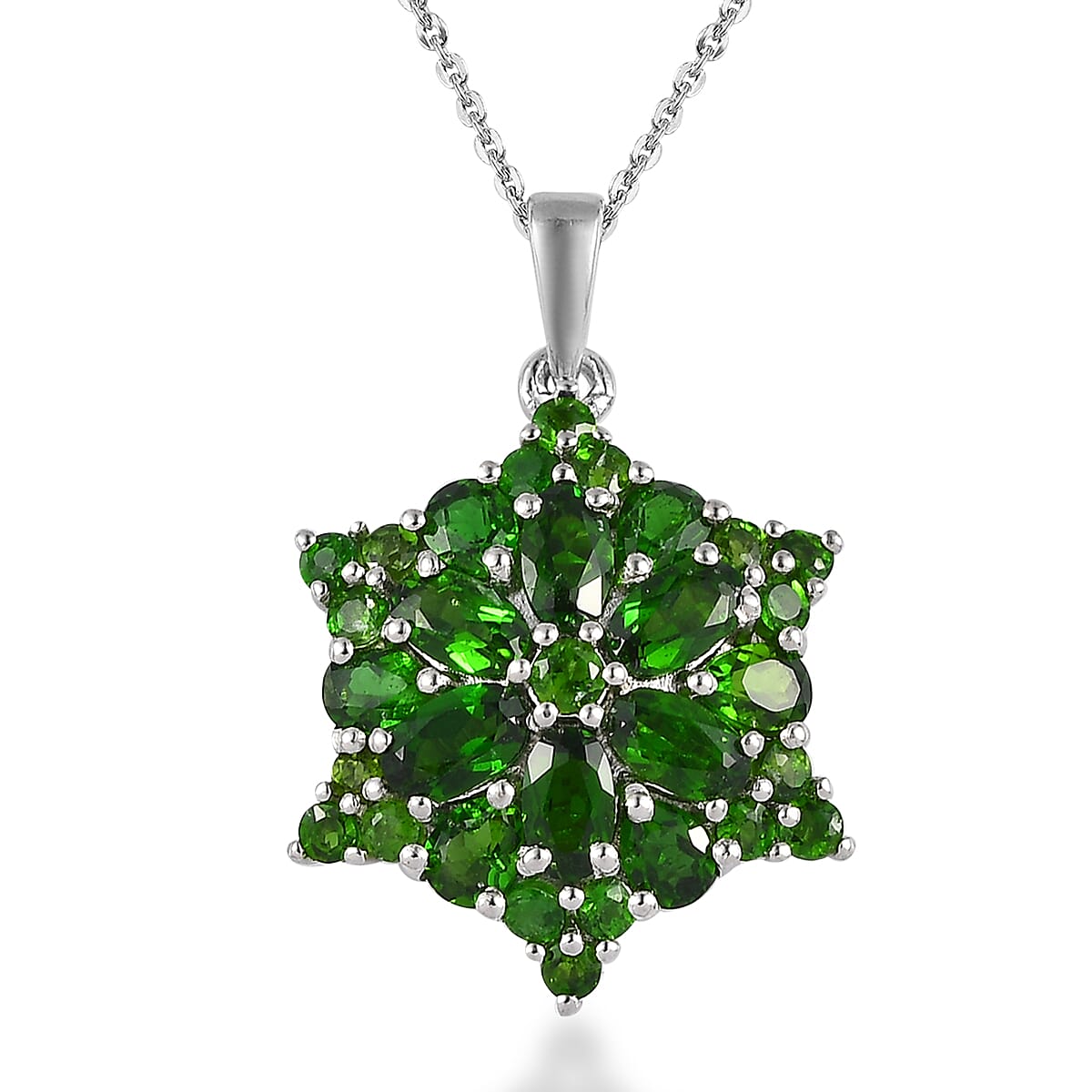 Chrome Diopside Floral Pendant Necklace 20 Inches in Platinum Over Sterling Silver 3.50 ctw
