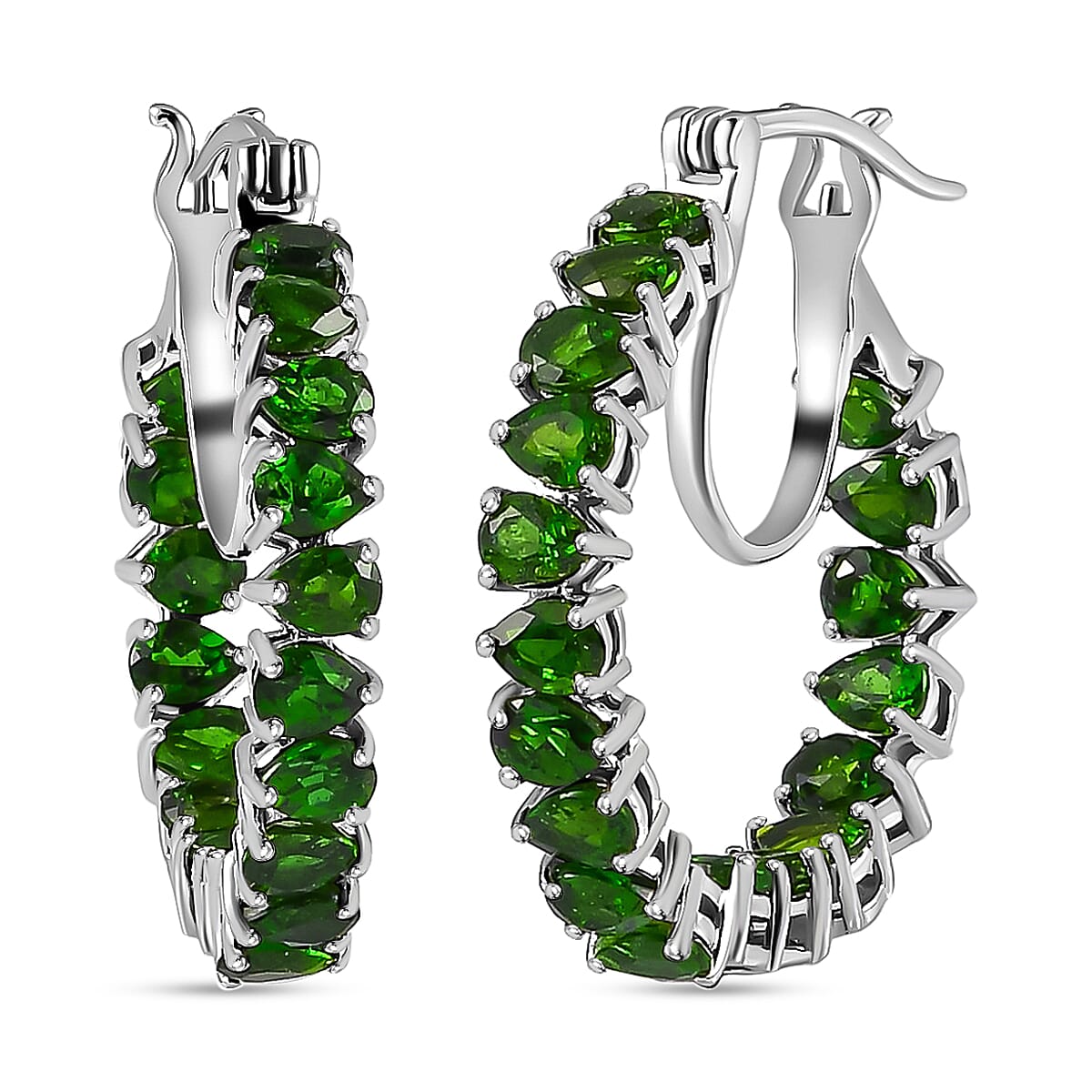 Chrome Diopside Hoop Earrings , Inside Out Hoops , Chrome Diopside Earrings ,Platinum Over Sterling Silver Hoops , In Out Hoop Earrings 5.65 ctw
