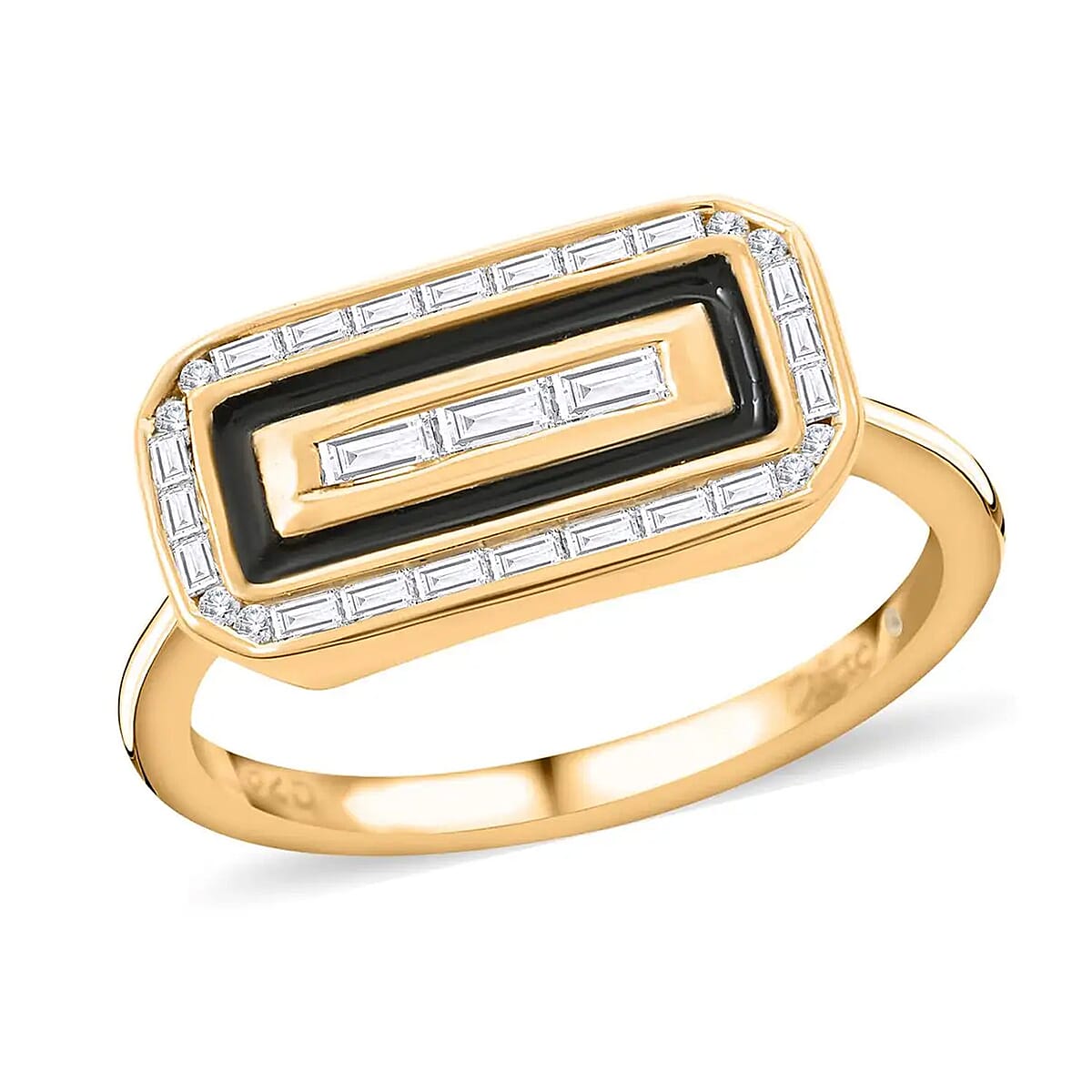 Clarte Black Tie Collection Moissanite and Black Enameled Ring in Vermeil Yellow Gold Over Sterling Silver (Size 7.0) 0.35 ctw