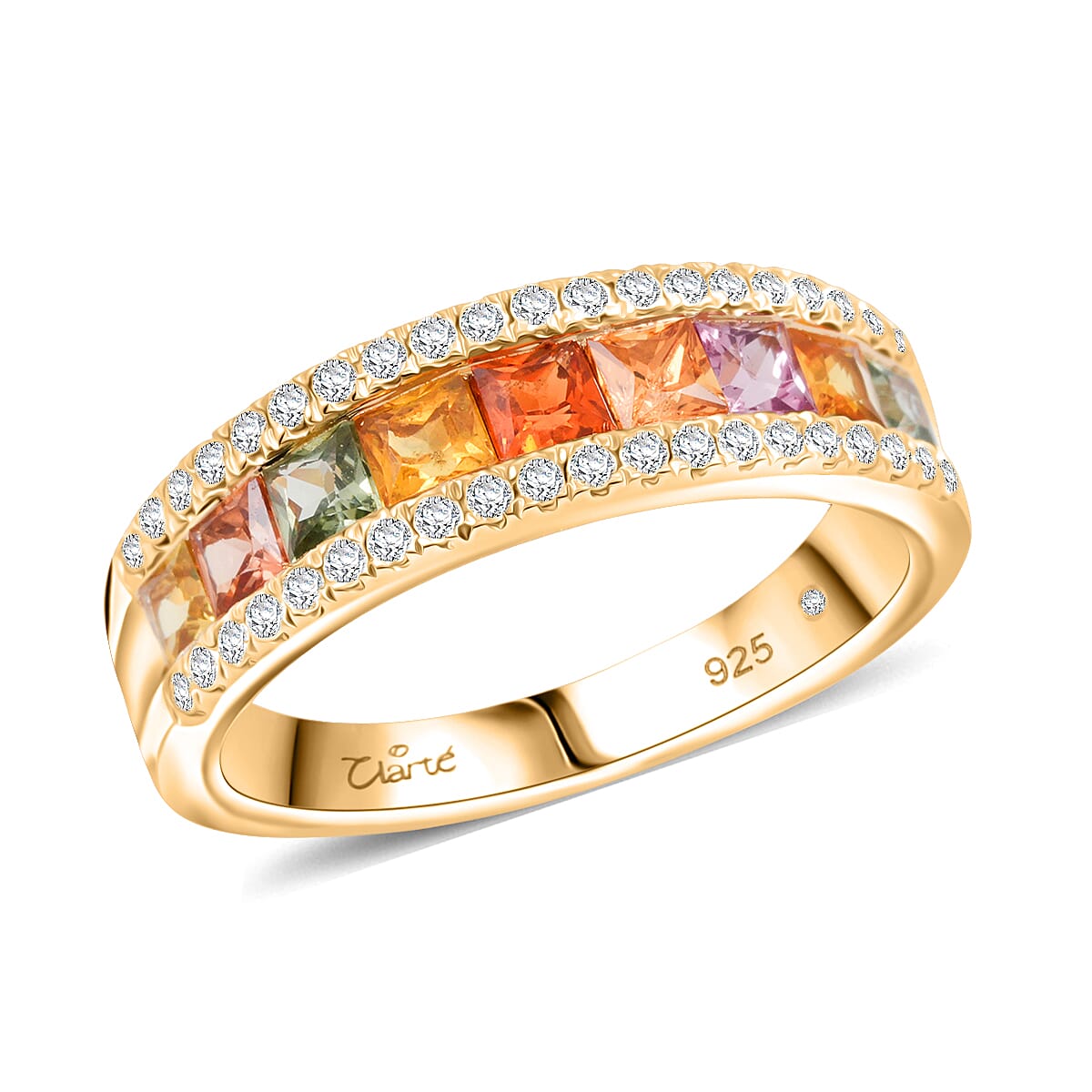 Clarte Prima Collection Multi Sapphire and Moissanite 1.60 ctw Ring in 14K Yellow Gold Over Sterling Silver (Size 7.0)