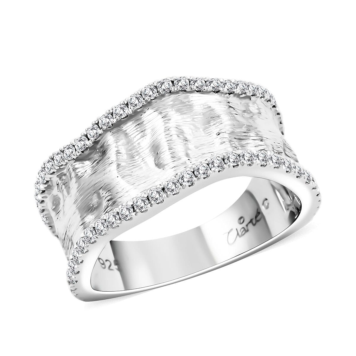 The Clarte sable collection brings a distinct moissanite ring in sterling silver, reflecting the textures and contours reminiscent of dunes. This piece offers a unique, hammered texture appearance combined with the brilliant sparkle of moissanite, making it a sophisticated choice for formal and casual settings.