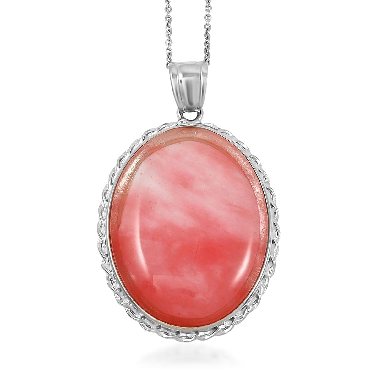 Classic Oval Cherry Quartz 52.00 ctw Pendant in Silvertone with Stainless Steel Necklace (20 Inches)