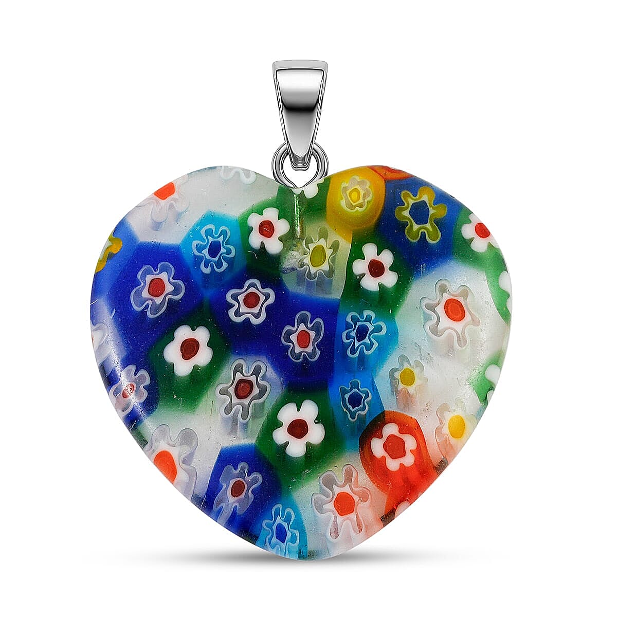Clear Rainbow Murano Style Heart Pendant in Silvertone with Stainless Steel Necklace (20 Inches)