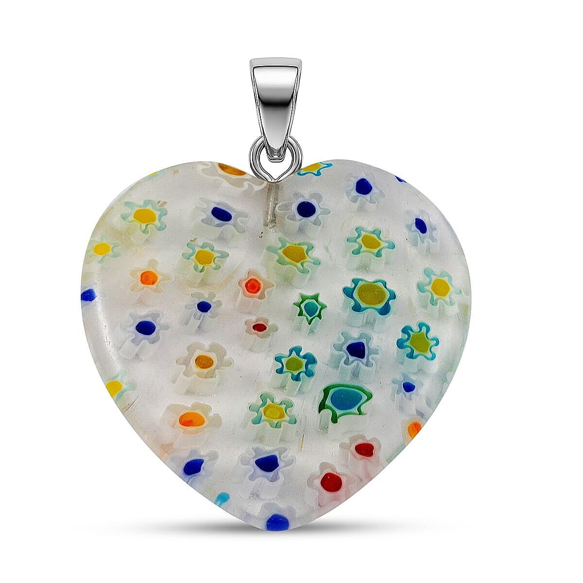 Clear Rainbow Murano Style Heart Pendant in Silvertone with Stainless Steel Necklace (20 Inches)