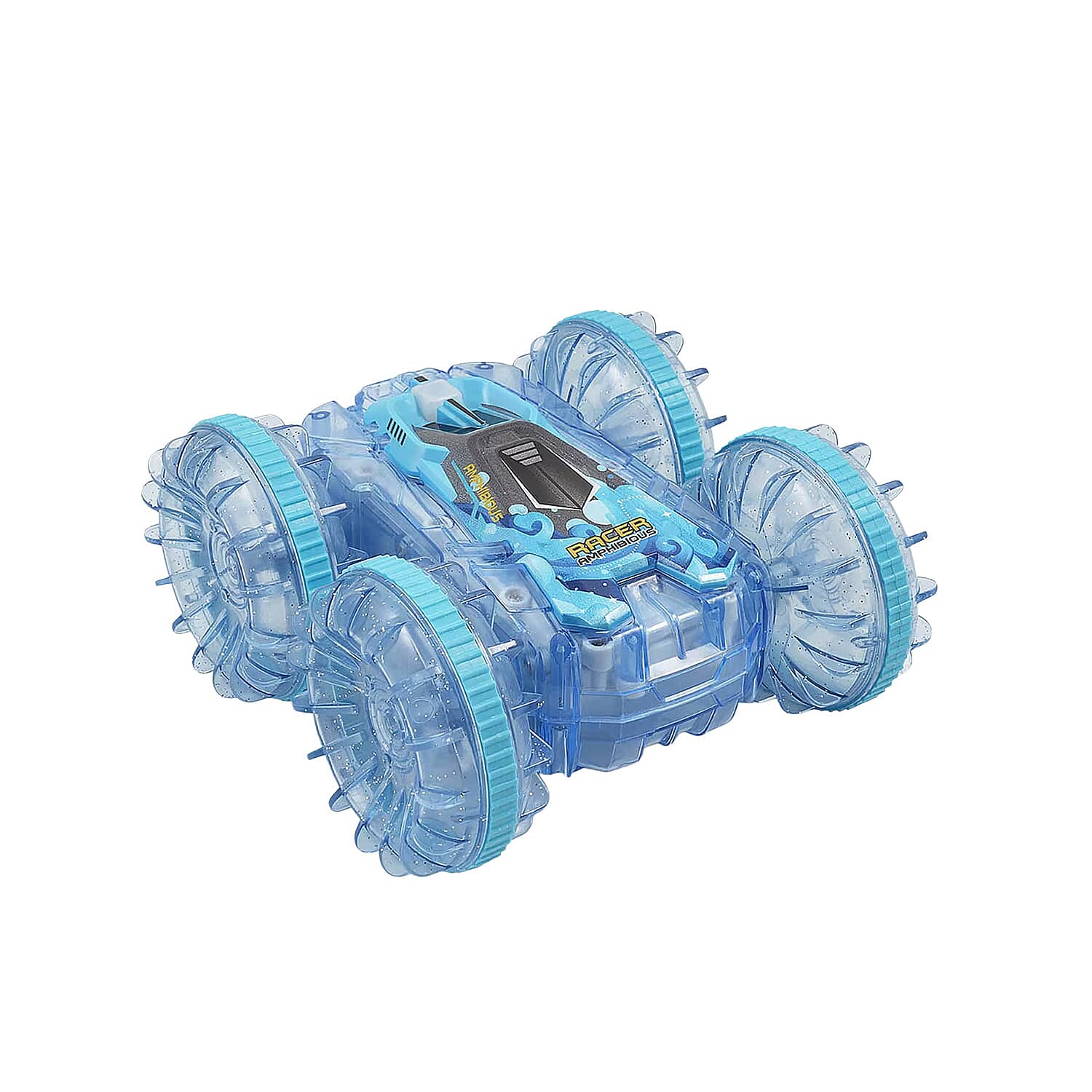 Unleash exciting adventures with this amphibious remote control car boat in blue. Designed to glide on water and race across land, it tackles pools and rough terrain with ease. Your child will enjoy hours of imaginative play with endless possibilities indoors and outdoors.