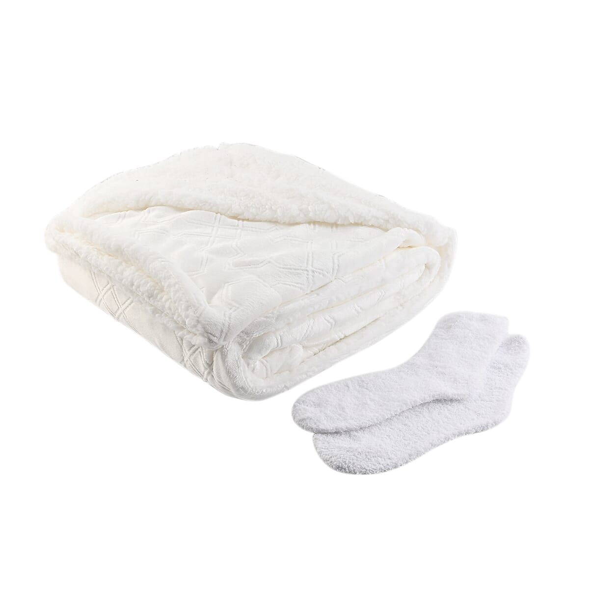 Closeout ARDOUR 2pc Gift Set White Sherpa Throw with Bonus Socks Set (One Size Fits Most)