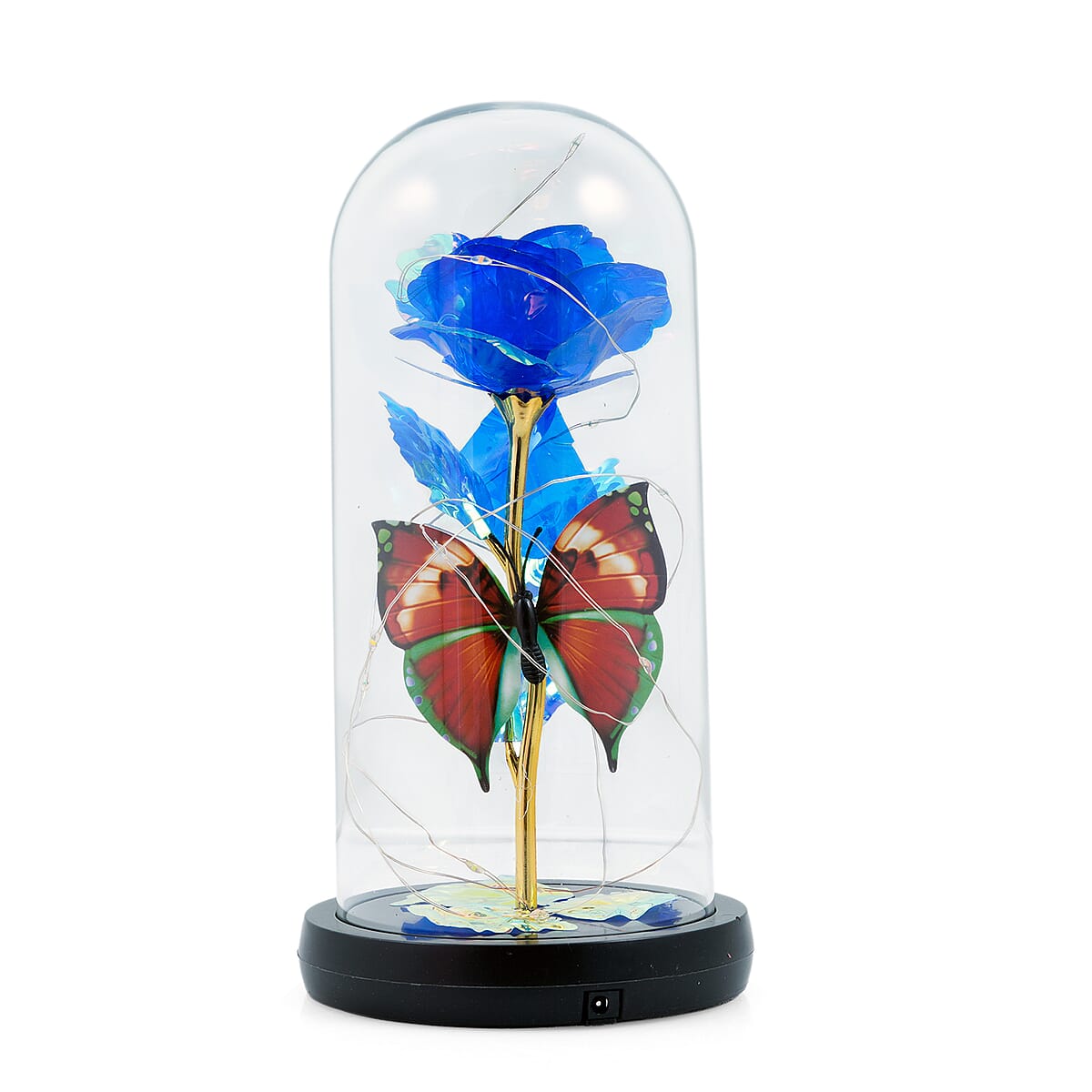 Closeout Blue Rose & Butterlfly in Glass Dome with LED Lights
