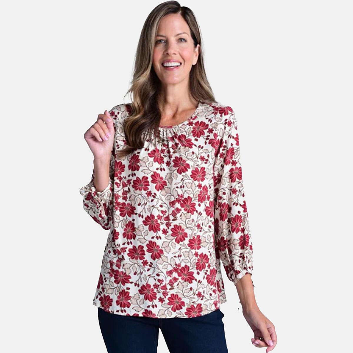 Refresh your wardrobe with the Christopher & Banks floral-printed jewel-neck blouse. This versatile top brings charm to your everyday style. This long-sleeve blouse's beautiful pattern flatters your silhouette with effortless grace. You'll appreciate the comfortable fit for all-day confidence.