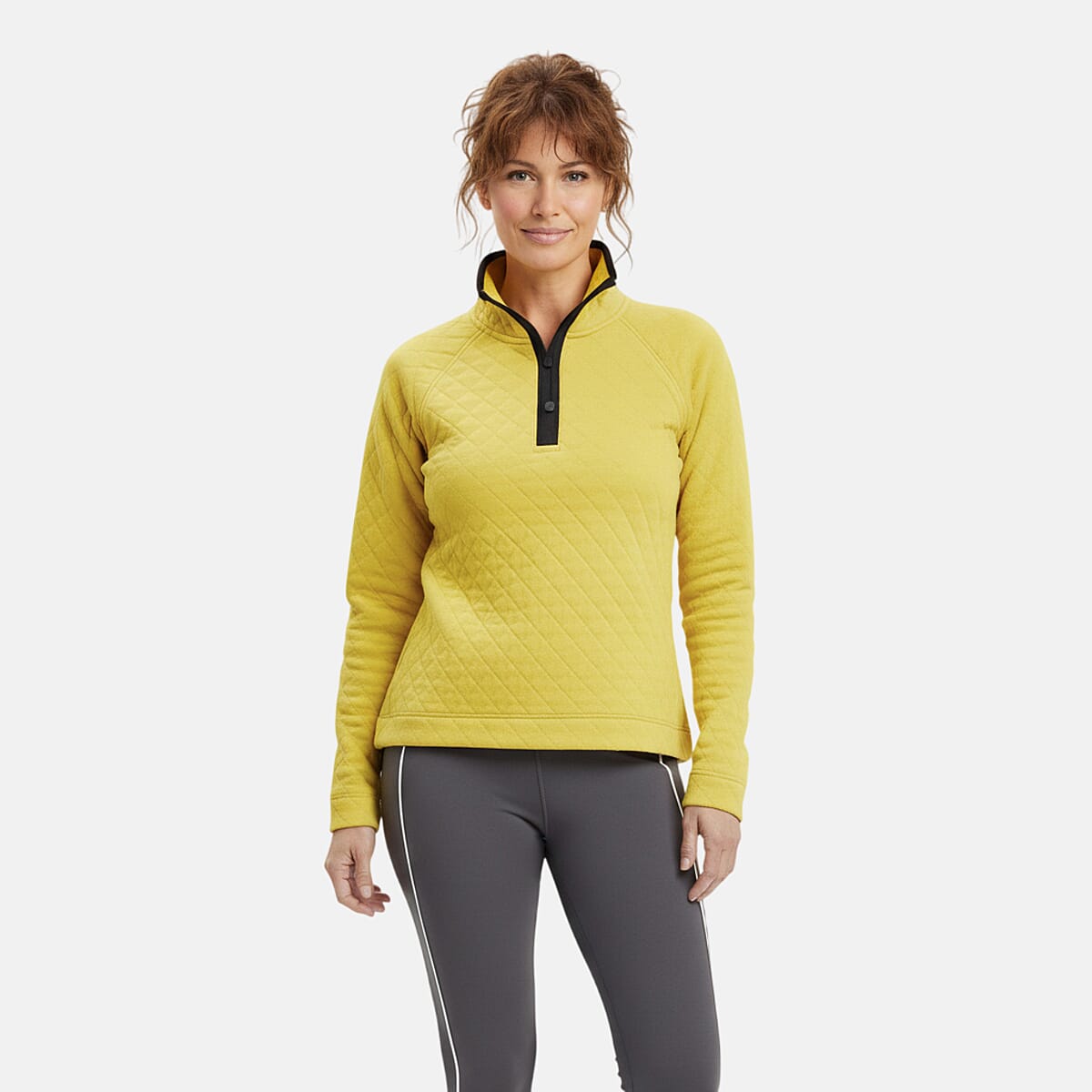 Closeout Christopher & Banks Yellow Relaxed Restyled Quilted Mock Neck Top - 1X