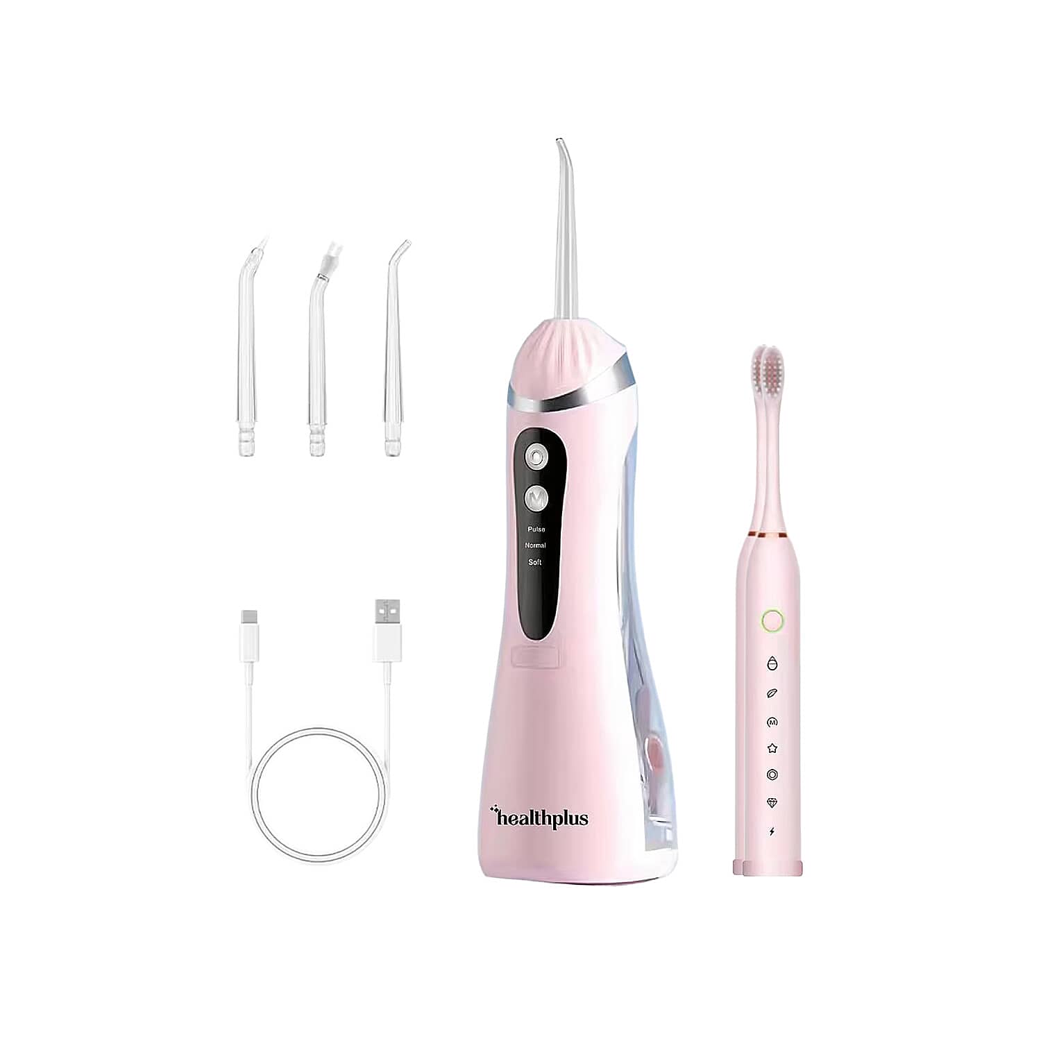 1 Electric Toothbrush, 1 Water Flosser, 3 Interchangeable Nozzles, USB Charging Cable |