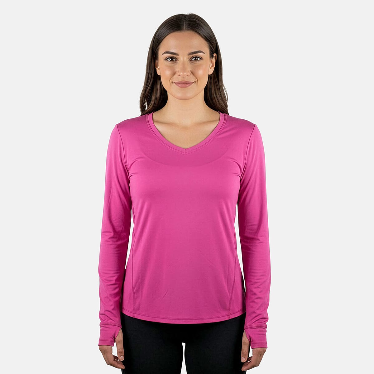 CLOSEOUT JONES NEW YORK Fuchsia Fitted Power Mesh Wicking Pullover Long Sleeve - M