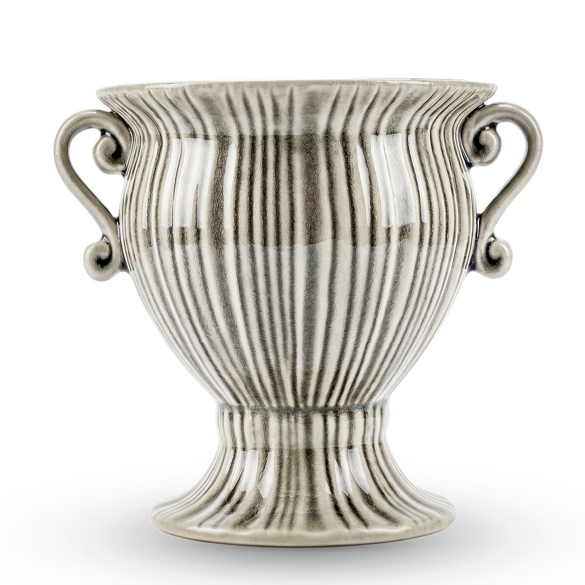 Elegant Ribbed Texture, Decorative Side Handles, Sturdy Pedestal Base, Durable Build |