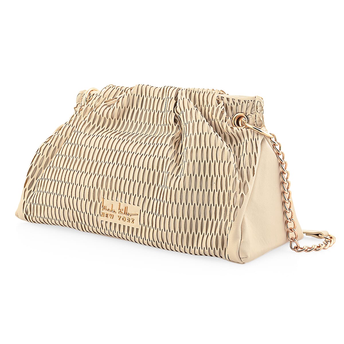 Closeout Nicole Miller Cream Faux Leather Lazer Cut Shoulder Bag