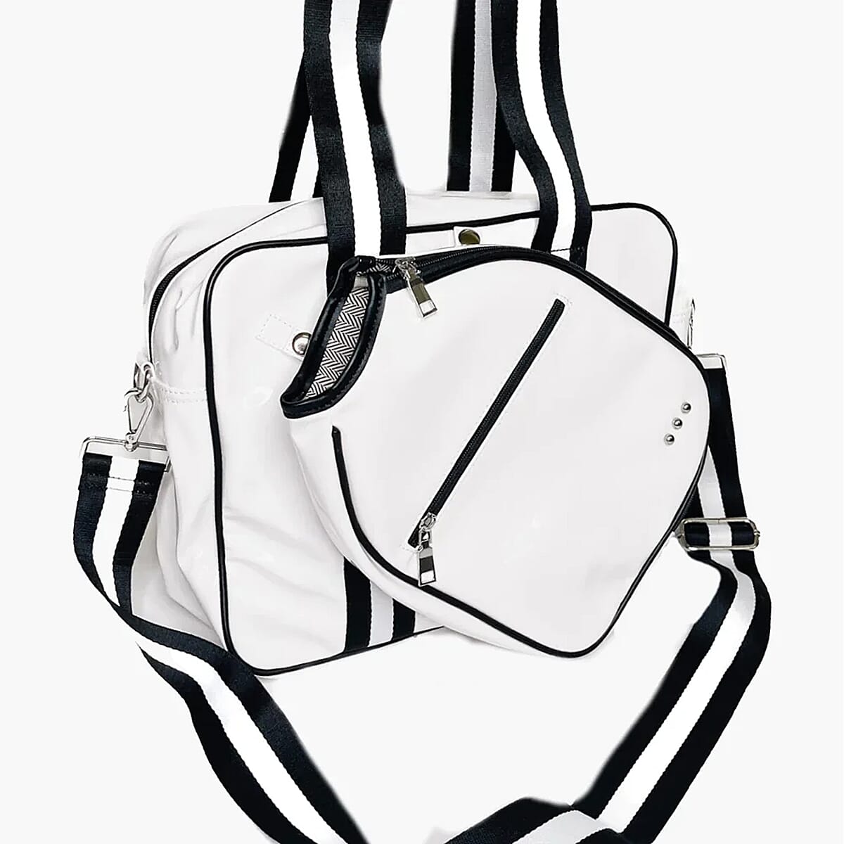 Closeout Poppy Patent White Shoulder Bag and Paddle Bag Set