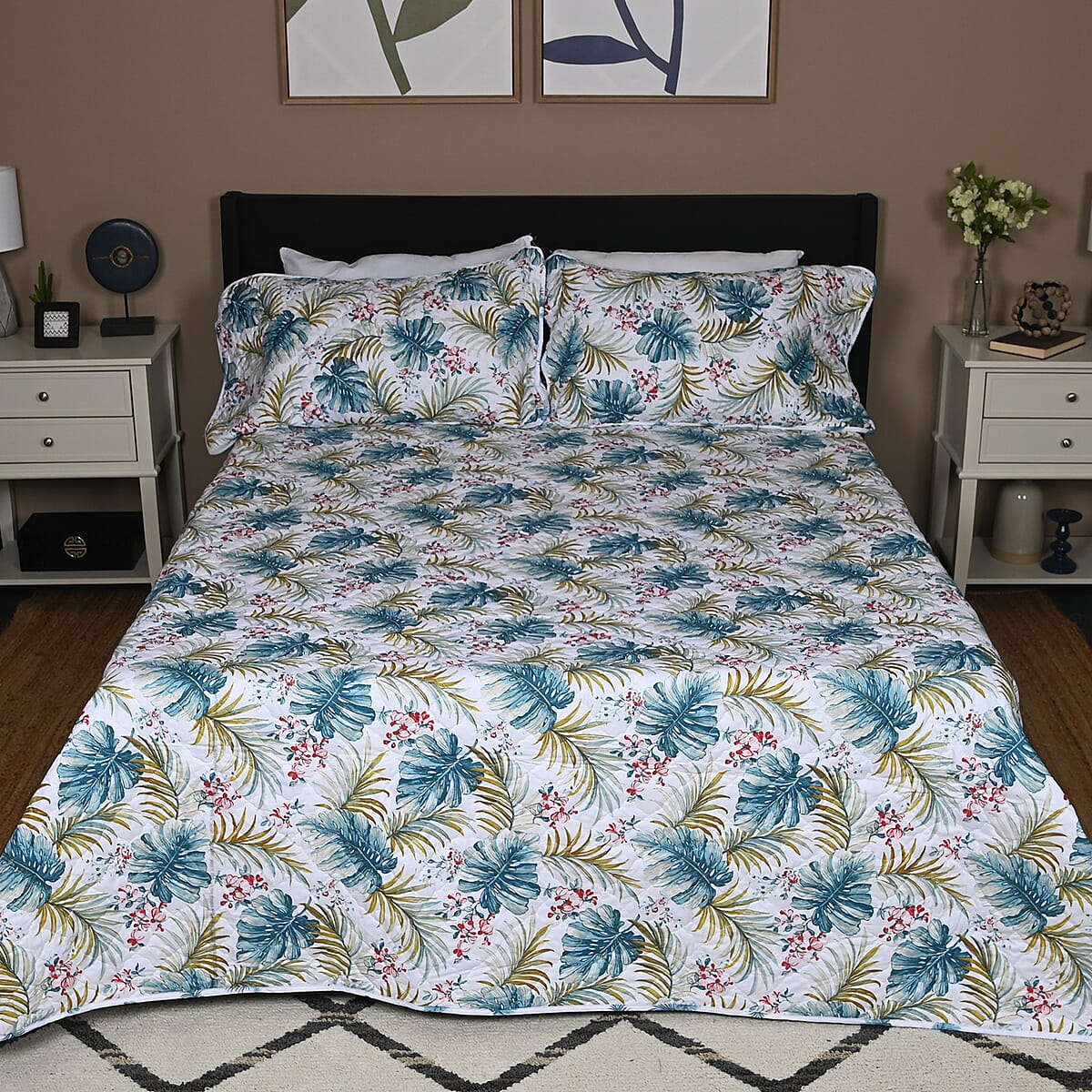 Closeout SEASIDE VILLA 3pc White and Green Leaf Disperse Print Quilt Set - (King)